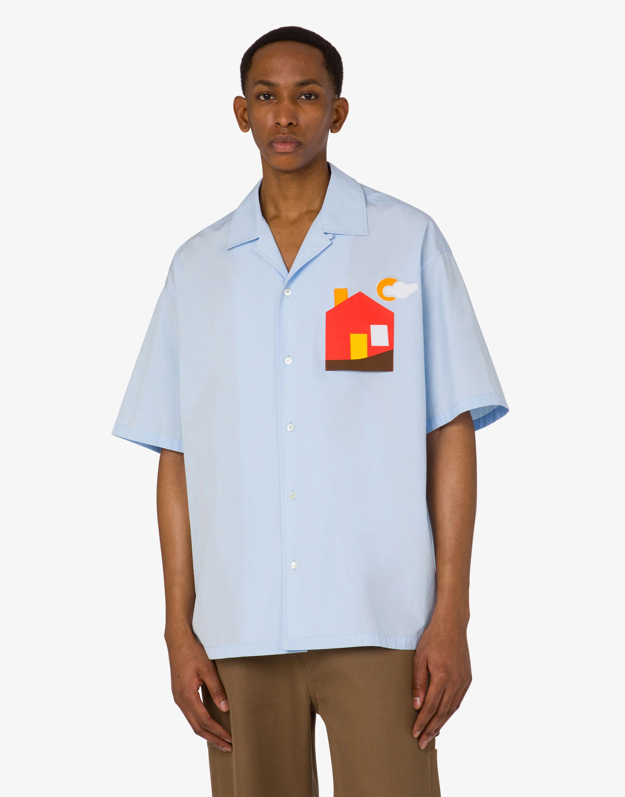 The fall/winter 2025 collection features the cotton poplin shirt with archival patch embroidered on the front.
