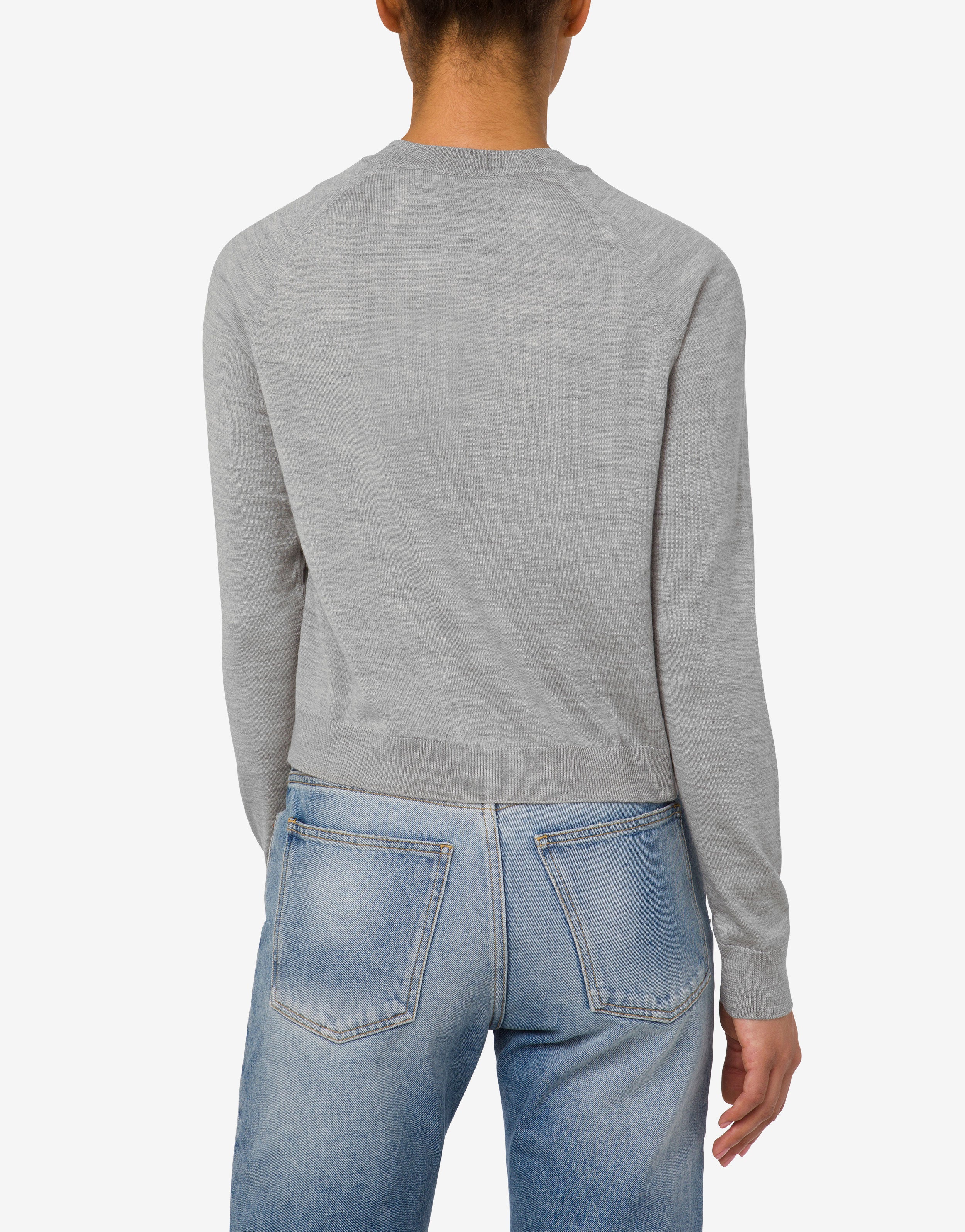 Short cardigan in ultrafine wool and silk with small gold-plated Moschino letter M.