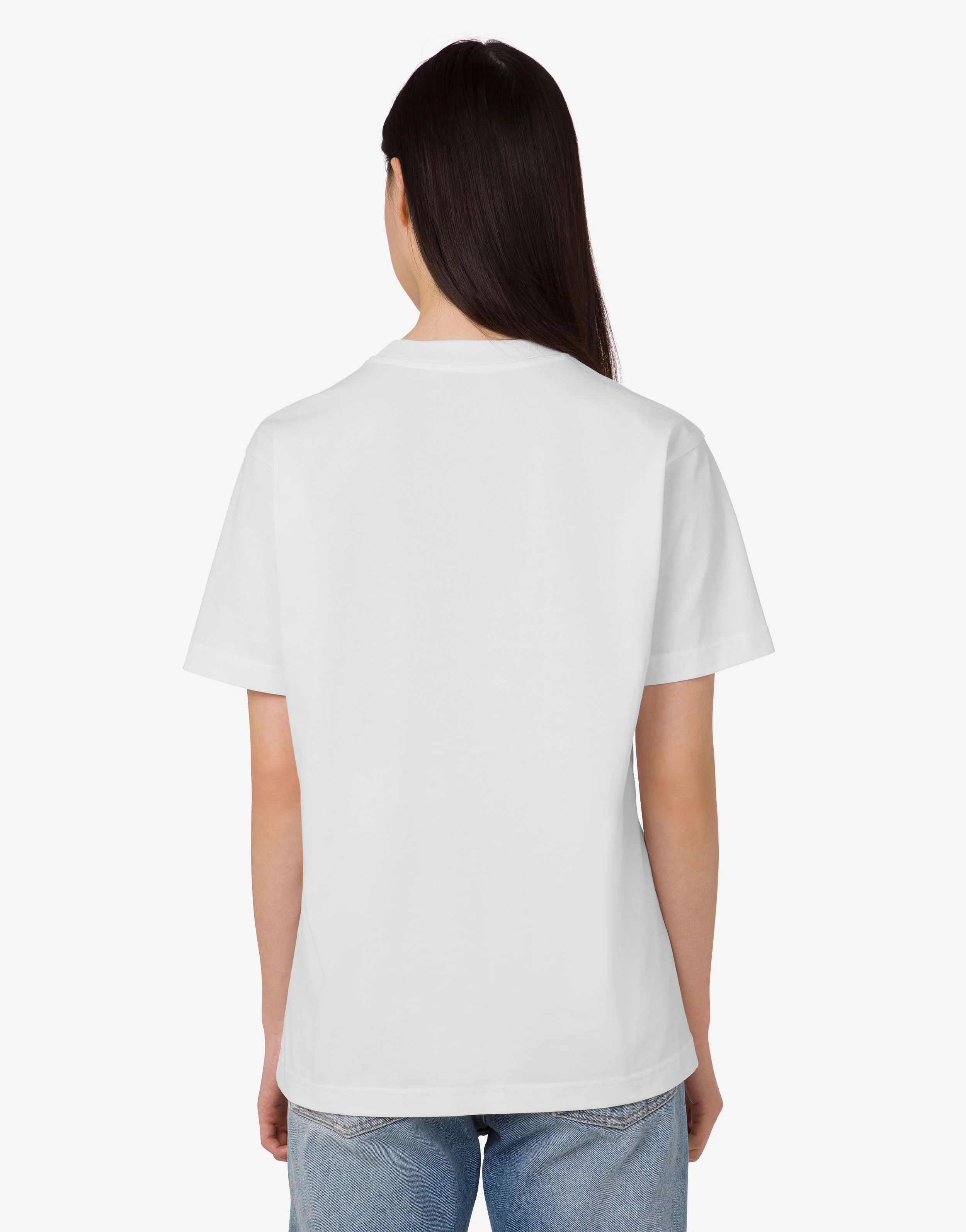 The fall/winter 2025 pre-collection features the organic cotton jersey T-shirt with maxi archival laurel wreath logo embroidered on the front.