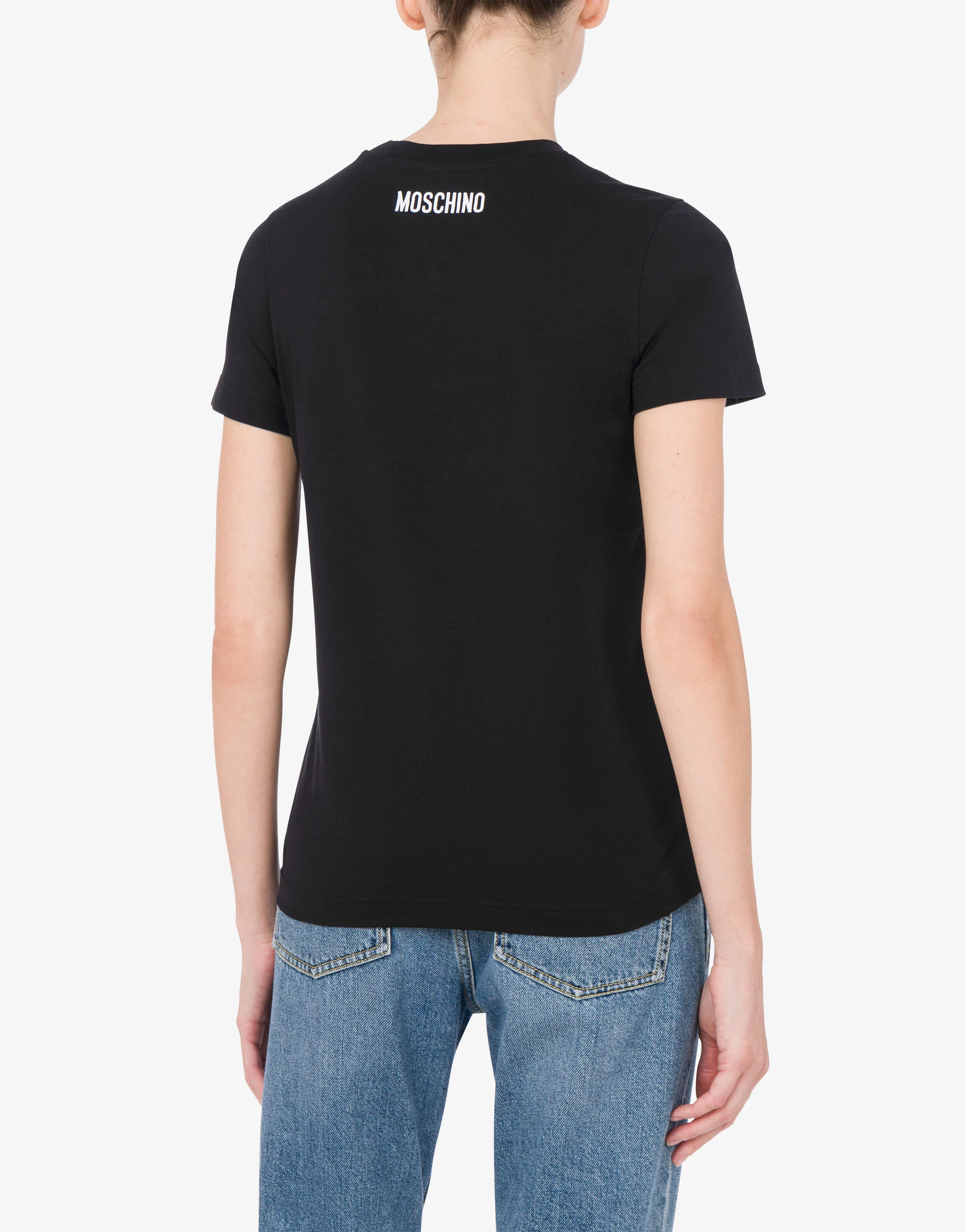 Organic cotton jersey T-shirt with small goose embroidery on the front.
