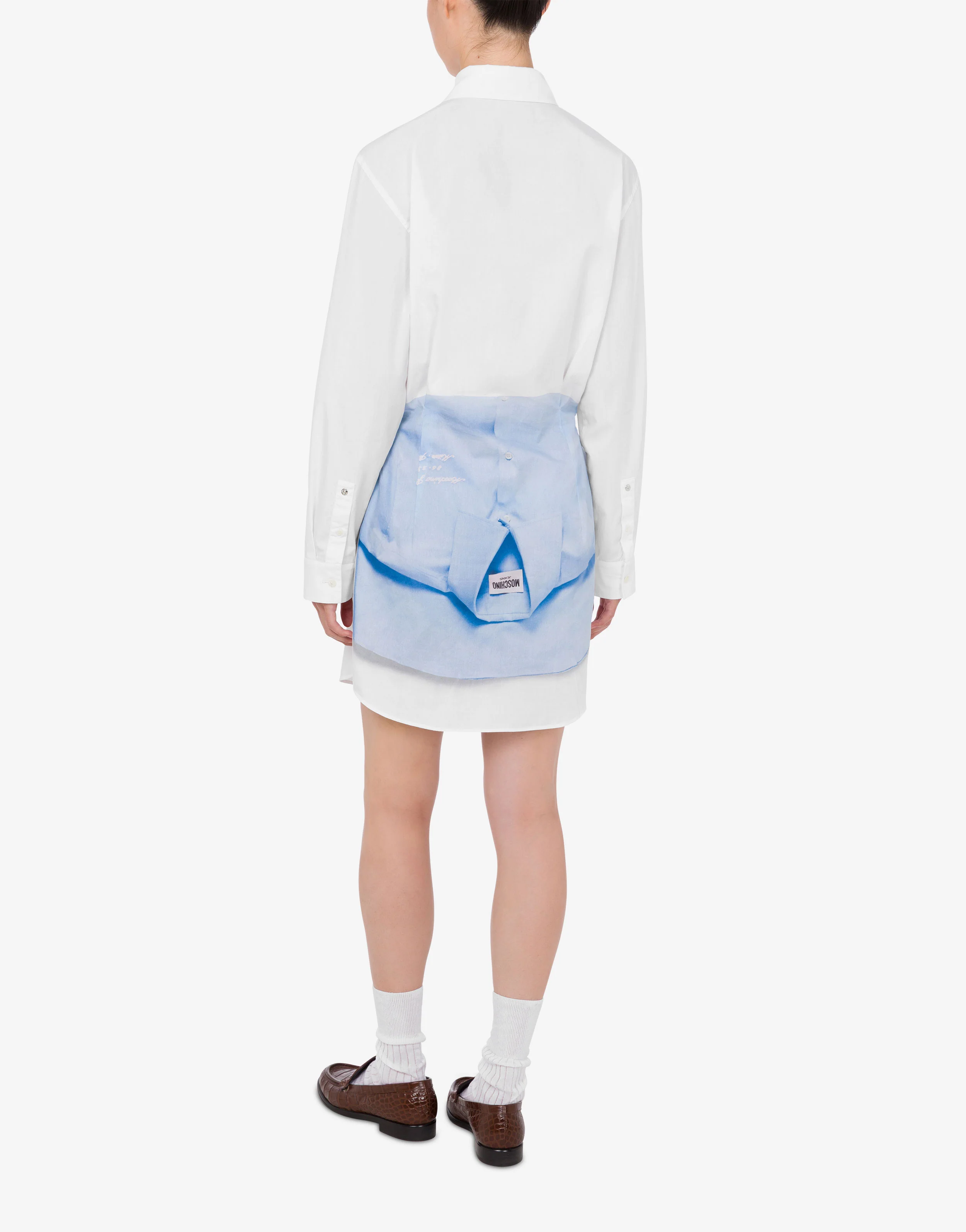 The Spring/Summer 2026 collection features a short cotton poplin dress with a trompe-l'œil print.
