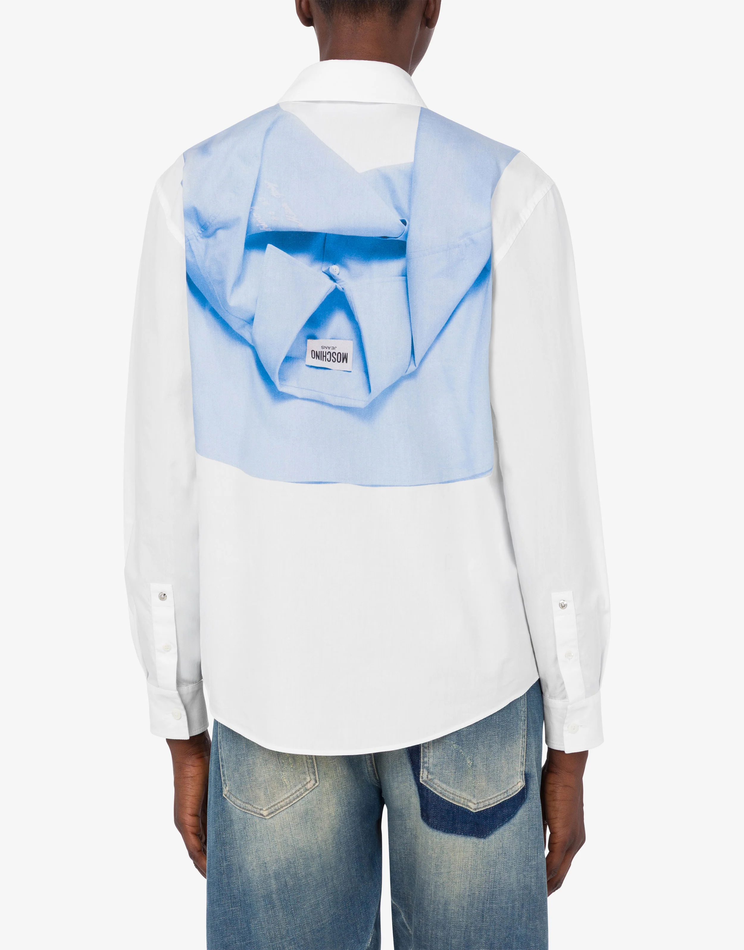 The Spring/Summer 2026 collection features a cotton poplin shirt with a trompe-l'œil print.