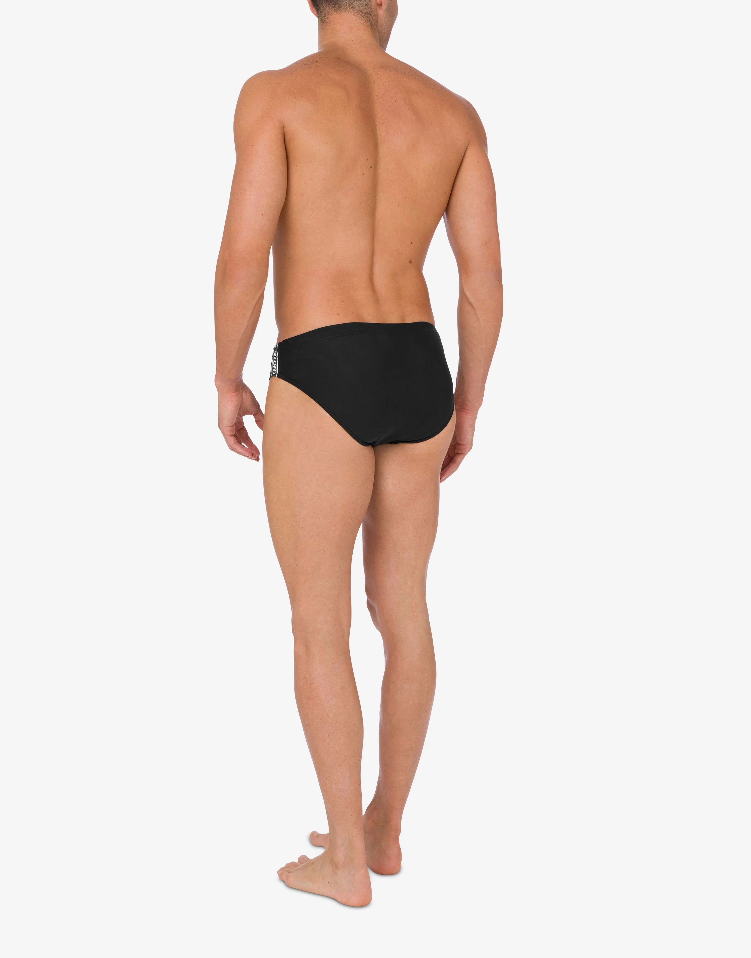 Lycra swim briefs with contrasting side bands and jacquard logo embroidery.