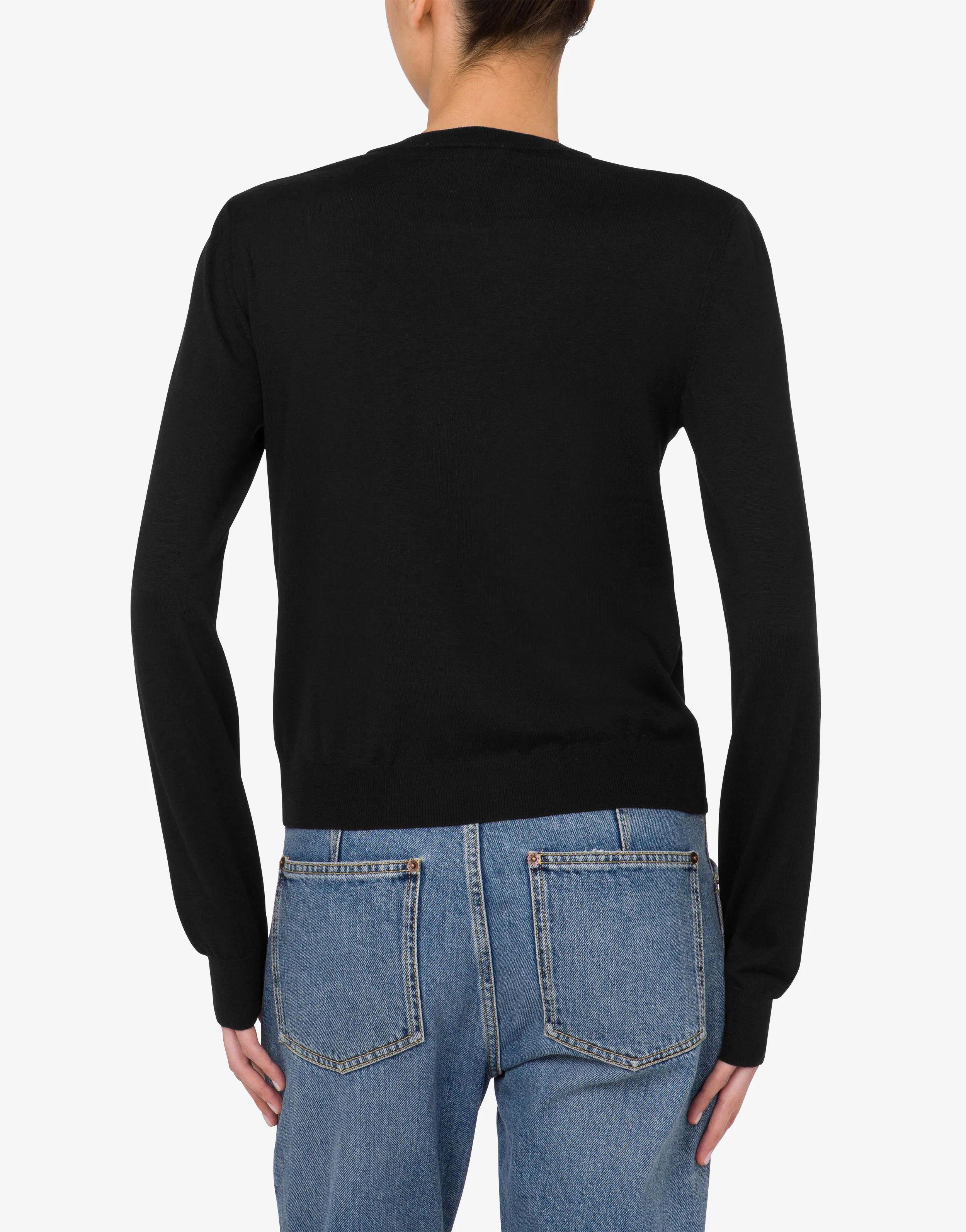 Fine wool and silk jumper with small M in gold-tone galvanised metal.